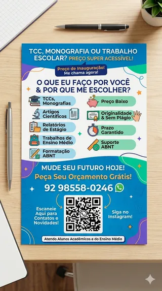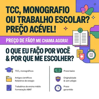 Desenvolvimento e organização completa do TCC com suporte durante o processo. Atendimento personalizado.