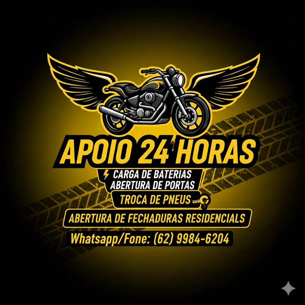 Socorro 24 para carga ou troca de bateria automotiva, abertura de fechaduras automotivas oi residências, troca de pneus e outros.