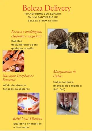 Trabalho com atendimento homecare nas modalidades de massagem relaxante, Reiki, Alongamento de unhas ( soft gel) Escova e modelagem de cabelos e Mega Hair ponto invisível.