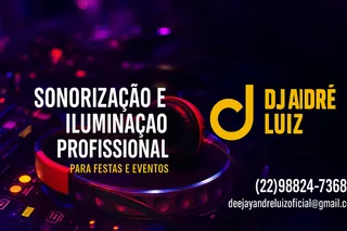 DJ André Luiz oferece sonorização e iluminação profissional para festas e eventos em geral. Com experiência, equipamentos de alta qualidade e repertório variado, garante animação, qualidade sonora e efeitos de luz que transformam qualquer evento em um momento inesquecível. Ideal para aniversários, casamentos e eventos corporativos.