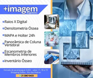 A +imagem realiza exames de Raios X, Densitometria Óssea, MAPA e Holter 24h, prezando pela qualidade e entrega rápida dos resultados, aliados à preços populares. Contamos com equipe especializada, com profissionais capacitados e habilitados para realizar tais procedimentos além de comprometidos com suas funções, oferecendo sempre uma solução inteligente e econômica para quem busca por esse tipo de serviço. Visamos contribuir de forma positiva, com serviços realizados de acordo com as normas e os padrões de qualidade que prezamos dentro da nossa atividade. Faça-nos uma visita. Será um prazer recebê-lo.