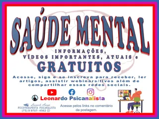 Atendo virtualmente prestando serviços de psicoterapia por meio da análise das palavras, imaginações, ações, interpretações dos pensamentos e sonhos inconscientes dos pacientes mediante a compreensão de suas estruturas psíquicas. Pelas quais, se encontra a origem dos problemas psicológicos que ao serem tratados pode-se amenizar os sofrimentos; facilitar o autoconhecimento, conflitos internos e angústias; resolver traumas da infância, depressão, transtornos de ansiedade e problemas sexuais; melhorar o controle emocional; reduzir as neuroses dos distúrbios psíquicos; aprender lidar com problemas; diminuir o sofrimento e auxiliar na evolução a fim de encontrar respostas para superar dores psíquicas.